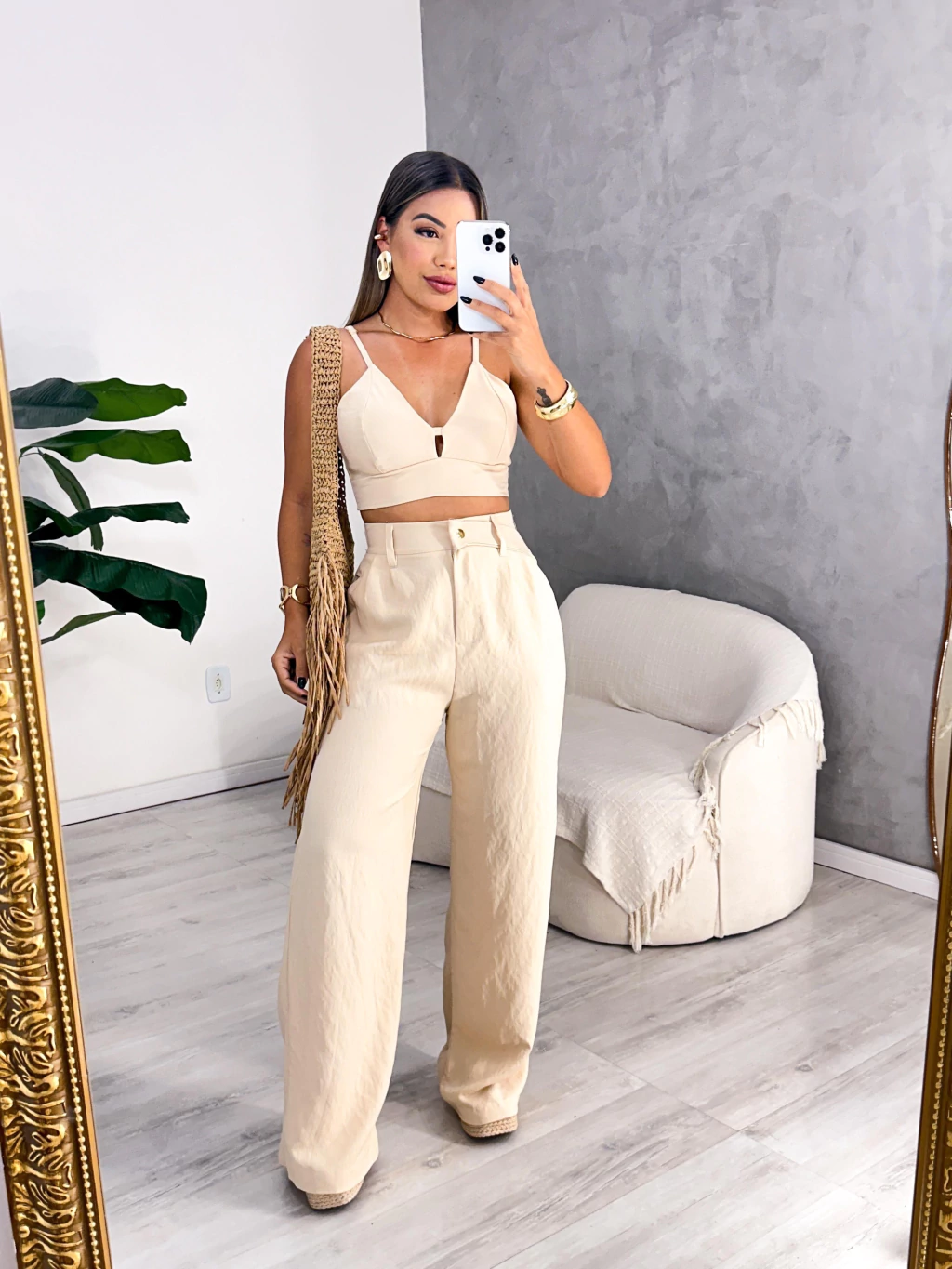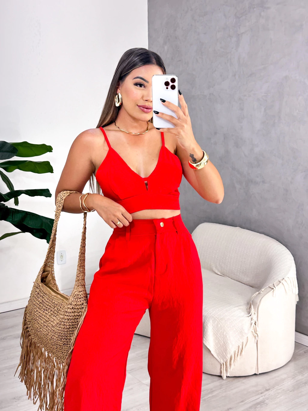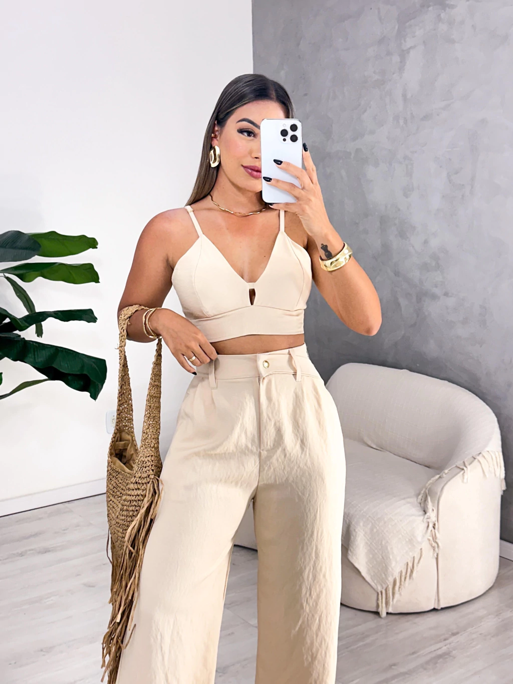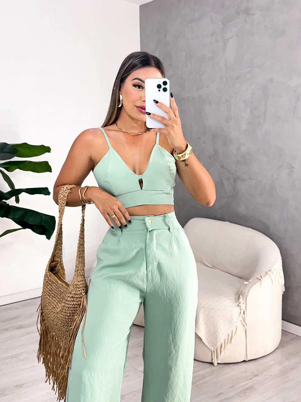 Disponível para vestir até os tamanhos 40/42, o Conjunto Ivy é ideal para ocasiões que pedem uma produção sofisticada e prática.