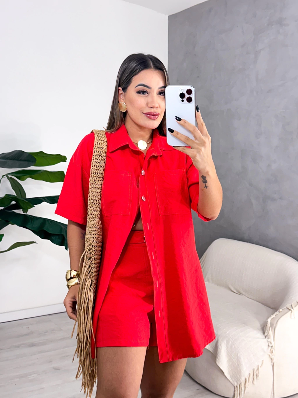 Apresentamos o Conjunto Zia, composto por um blusão com botões e modelo alongado que proporciona um caimento elegante e moderno. O short acompanha cinto opcional, permitindo ajustes personalizados para maior conforto e estilo.