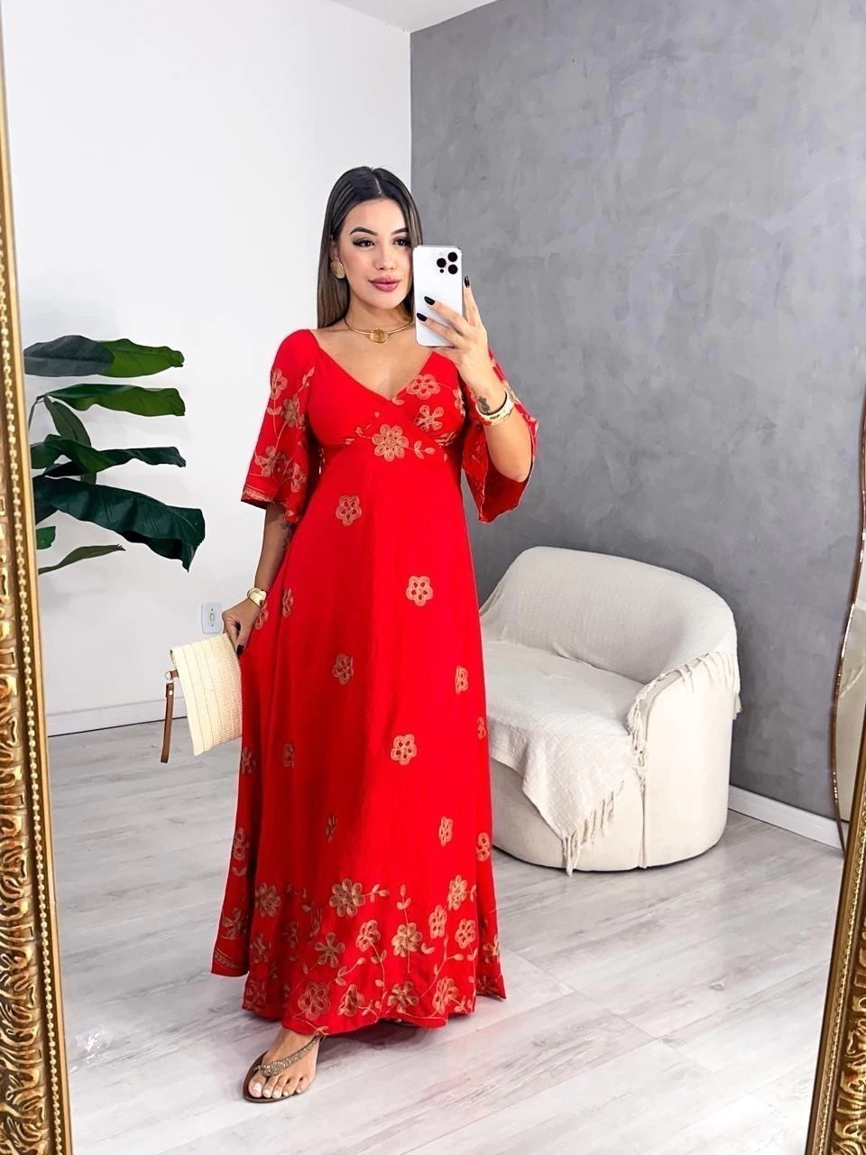 Apresentamos o Vestido Valentina, um modelo longo que une conforto e sofisticação para suas ocasiões especiais. Com manguinhas delicadas, ele oferece um toque de charme e leveza ao visual.